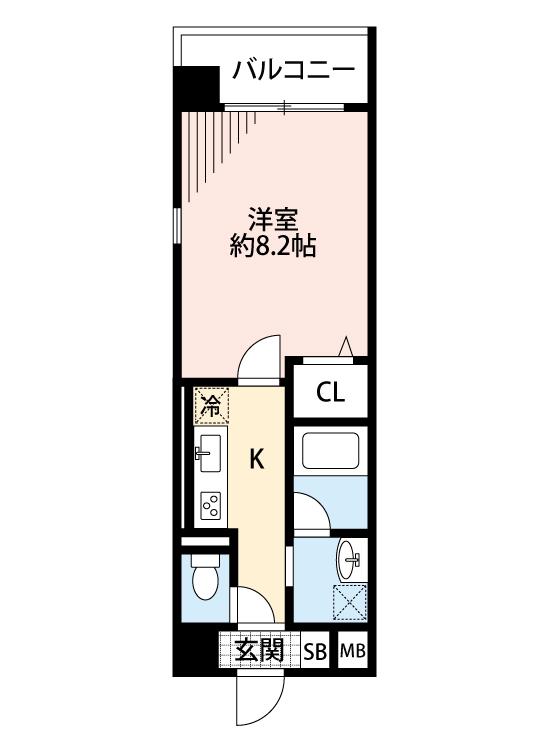 | 1K | 洋室 8.2畳 | 28.36㎡ |