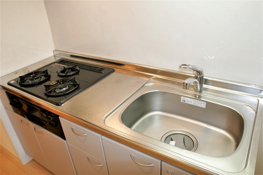 | 設備 | ガス(都市ガス)、インターホン(TVモニター付き)、防犯カメラ、ダブルロック、オートロック、専用ゴミ置き場(あり)、駐輪場、バイク置き場、角部屋、フローリング、照明器具、ベランダ・バルコニー、クローゼット、クローゼット数(1)、下駄箱、バス・トイレ別(別室)、シャワー、浴室乾燥機、脱衣所、3点給湯、洗面所独立、シャンプードレッサー、洗面所にドア、洗濯機置き場(室内)、ガスコンロ口数(3)、コンロ種類(都市ガス)、グリル、システムキッチン、エアコン、エアコン台数(1)、24H換気システム、BS、CATV | ||