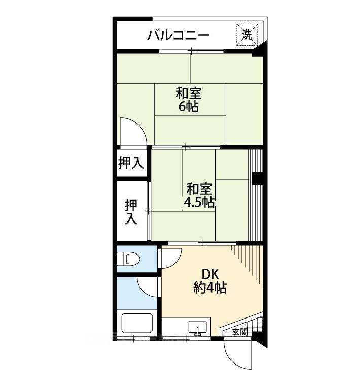 間取り詳細 | 和室 6畳 、和室 4.5畳 、DK 4畳 |