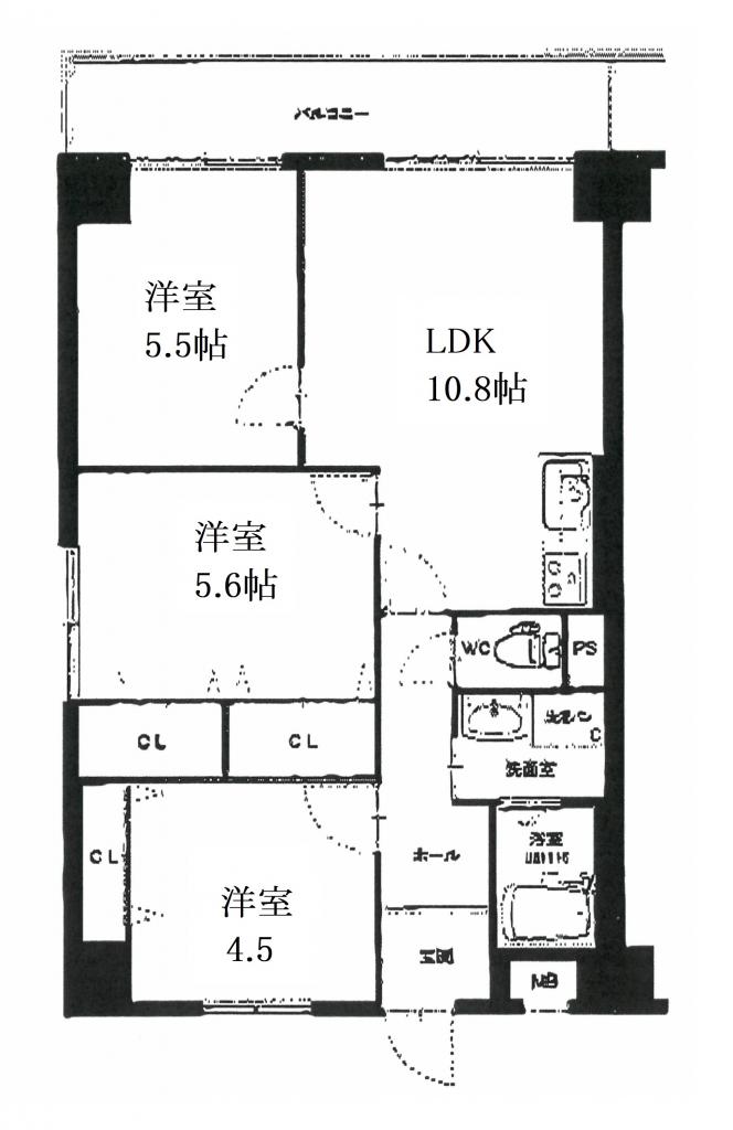 | 間取り詳細 | LDK 10.8畳 、洋室 5.6畳 、洋室 5.5畳 、和室 4.5畳 |