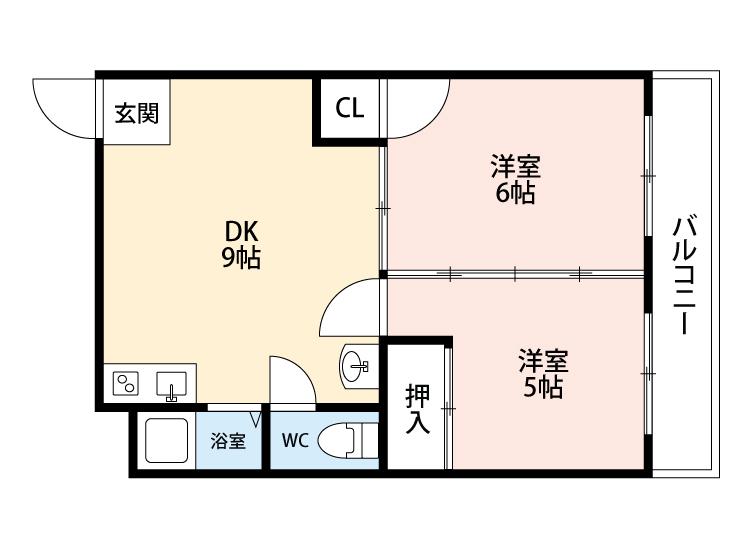間取り詳細 | 洋室 6畳 、和室 5畳 、DK 9畳 |