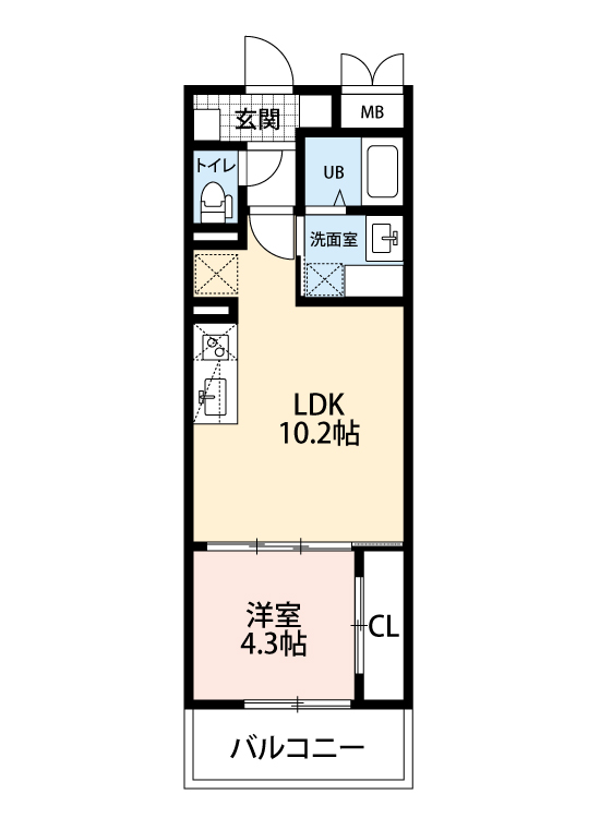 洋室 4.3畳 、LDK 10.2畳