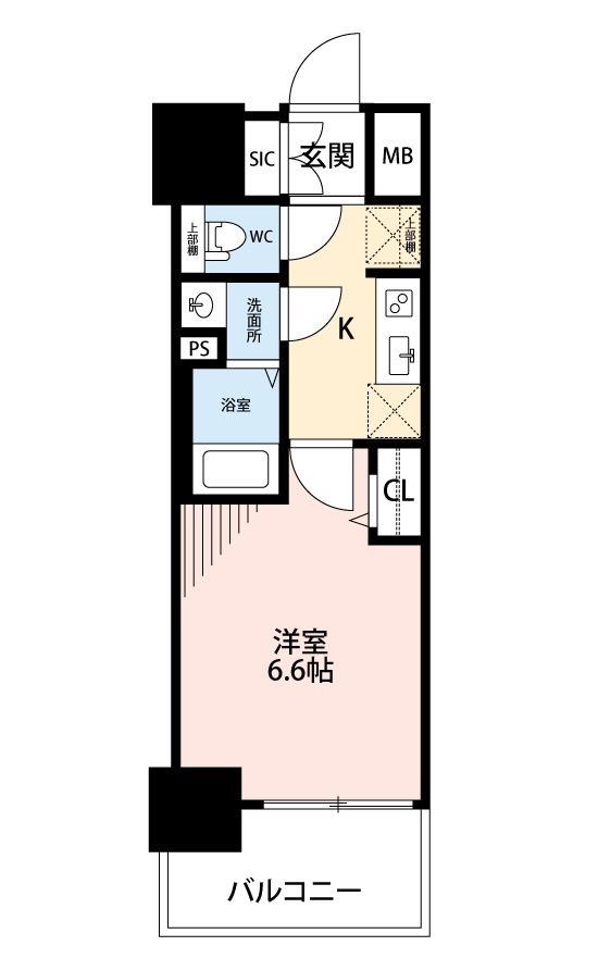 | 1K | 洋室 6.6畳 | 23.4㎡ |