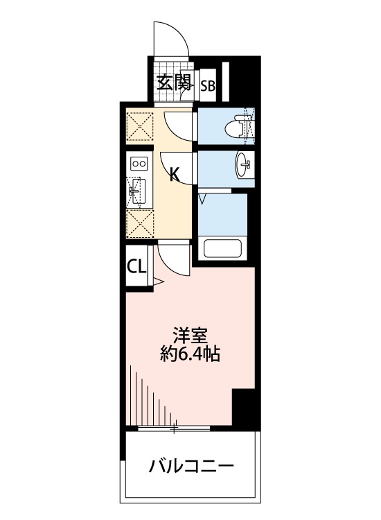 | 1K | 洋室 6.4畳 | 22.04㎡ |