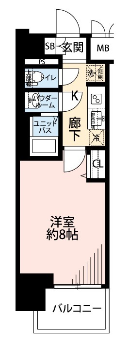 | 1K | 洋室 8畳 | 25.8㎡ |