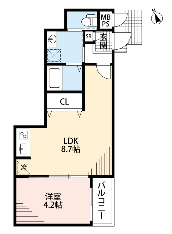 | 間取り詳細 | LDK 8.7畳 、洋室 4.2畳 |