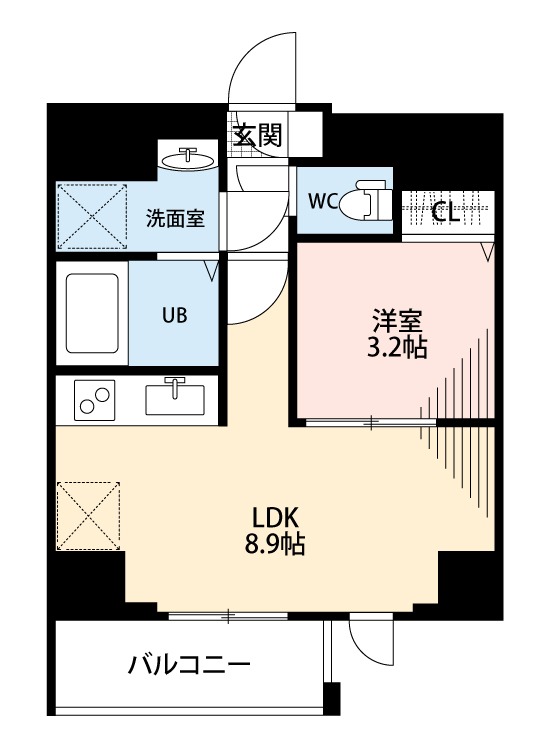 | 間取り詳細 | LDK 8.9畳 、洋室 3.2畳 |