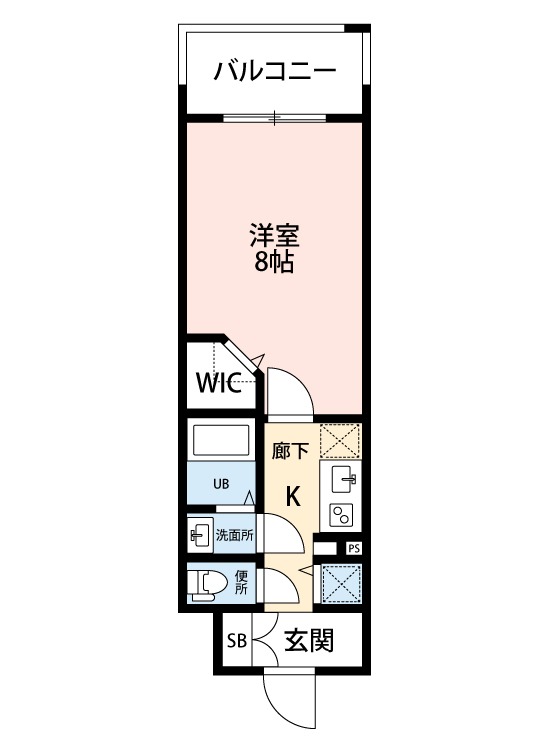 | 1K | 洋室 8畳 | 26.16㎡ |